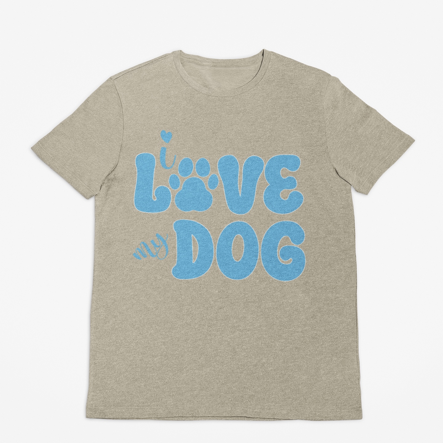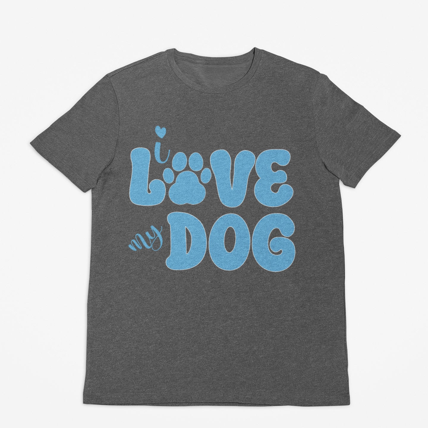 Show off your love for dogs with this adorable Graphic Tee for dog lovers featuring the phrase “I Love My Dog” in Blue lettering. It’s like your dog is giving its paw print of approval on your heart.