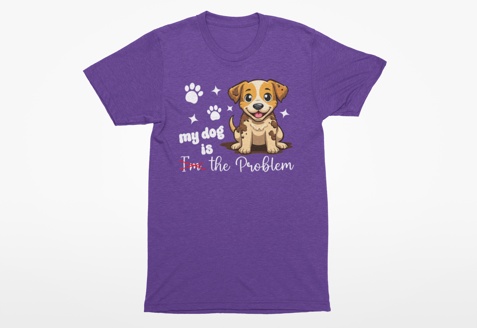 We all know the truth… and now you can wear it! Our hilarious “My Dog Is the Problem” shirt features a mischievous pup covered in mud, with the phrase showing “I’m” crossed out in red because let’s be honest, it’s definitely the dog’s fault.