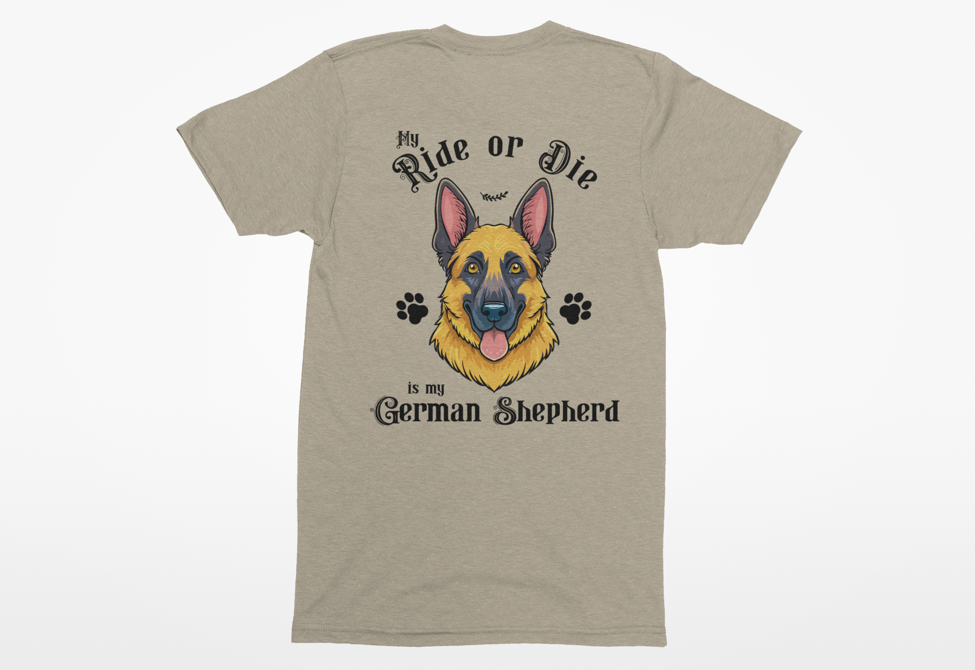Whether you’re at the dog park, running errands, or just relaxing at home, this dog lover tee is the perfect way to show the world that your German Shepherd is more than a pet—they’re your ride or die.