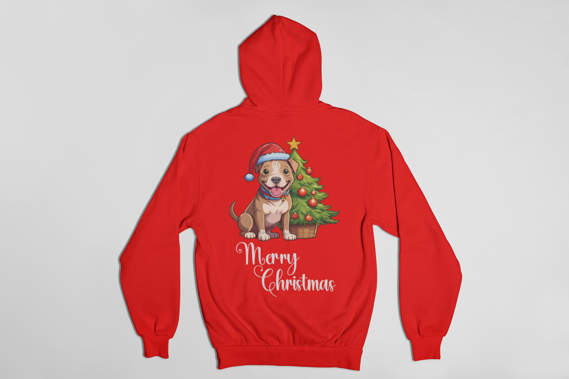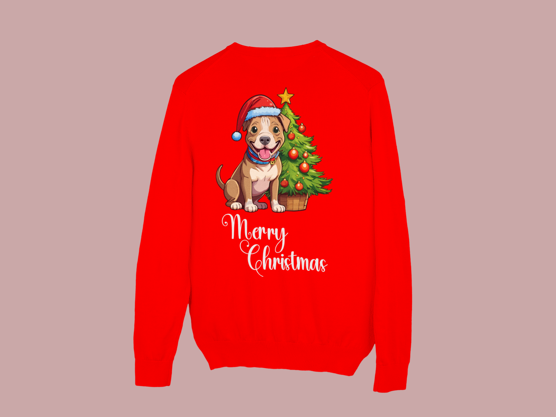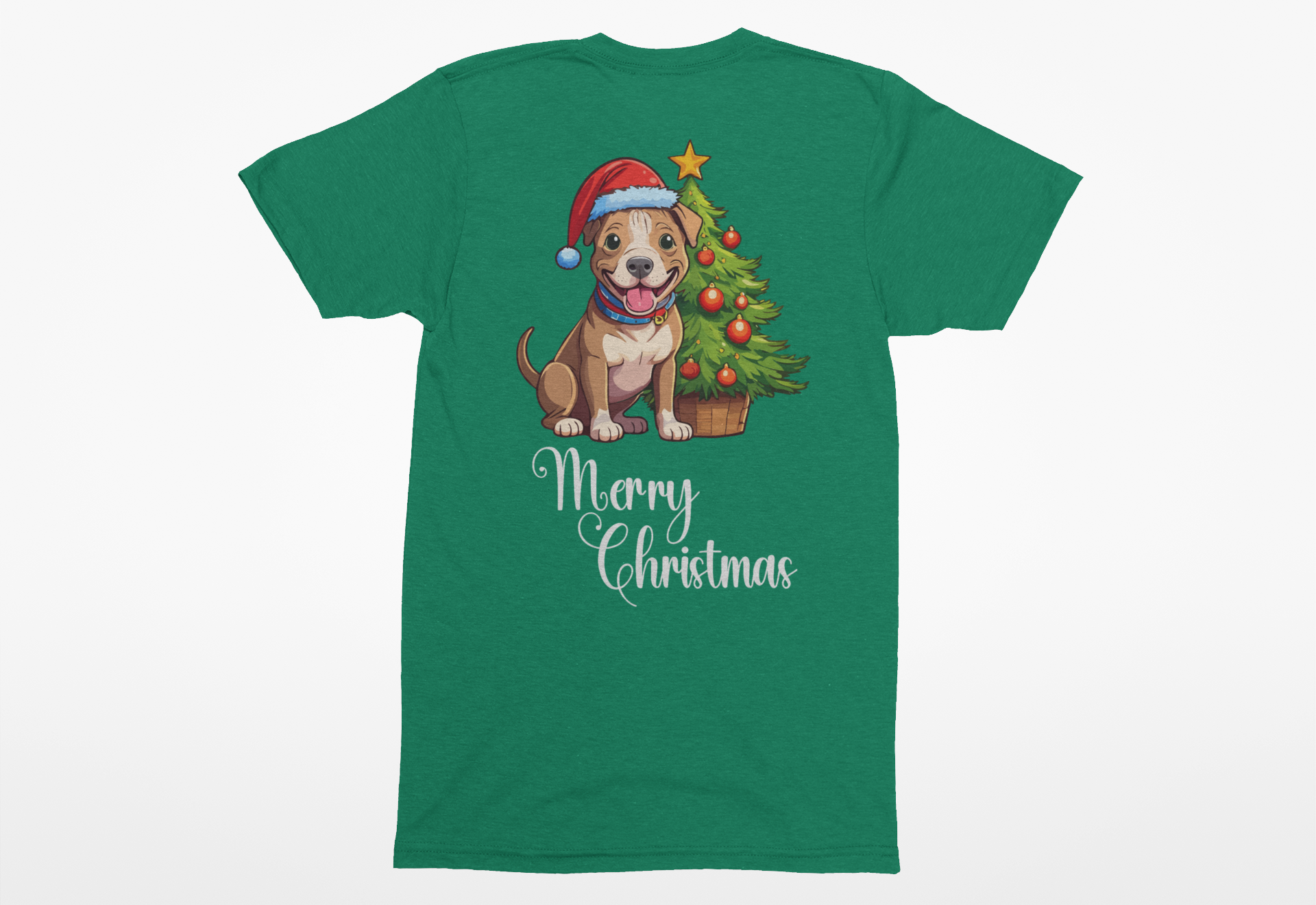 Charming “Merry Christmas” design with a cute Pitbull dressed in a Santa hat