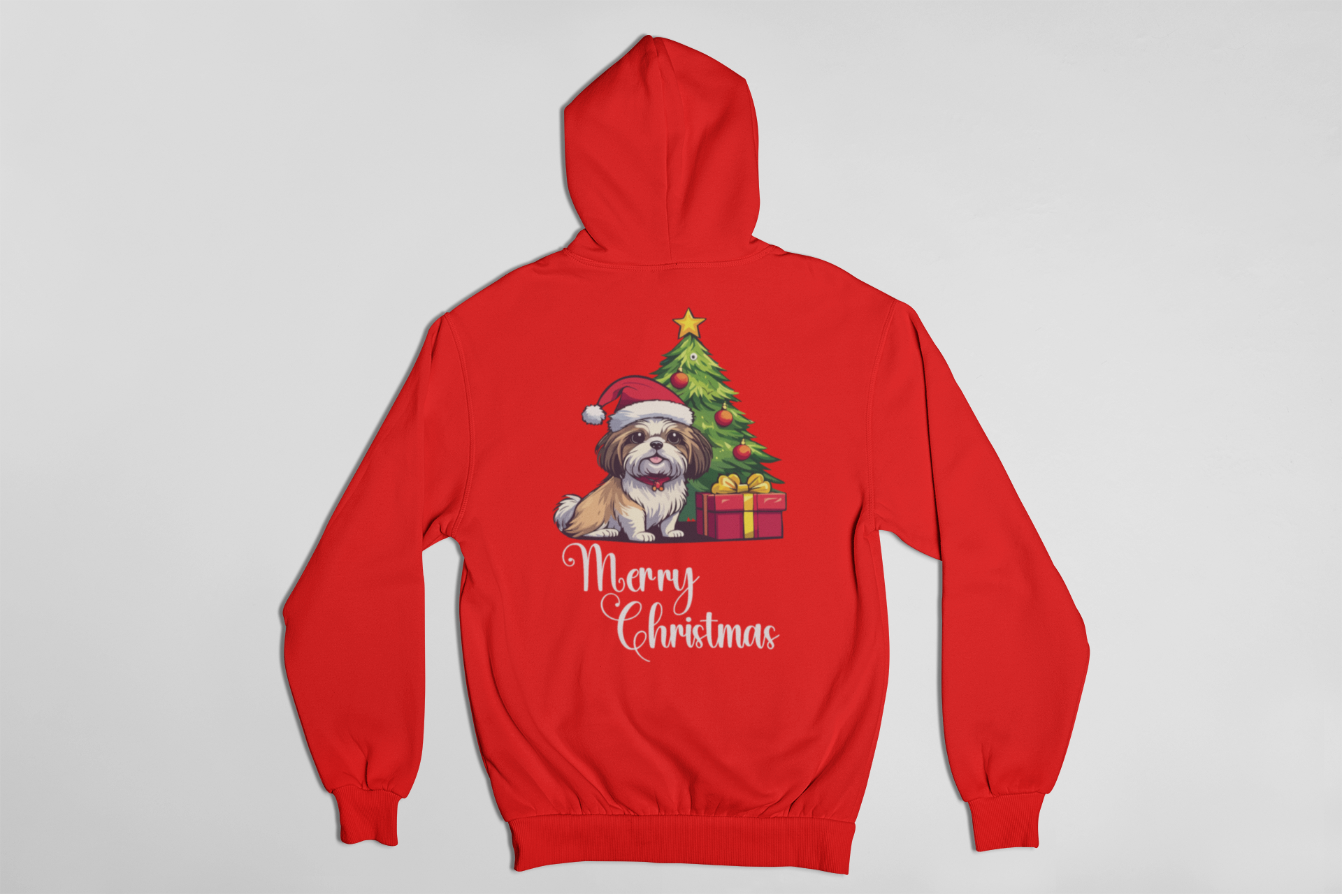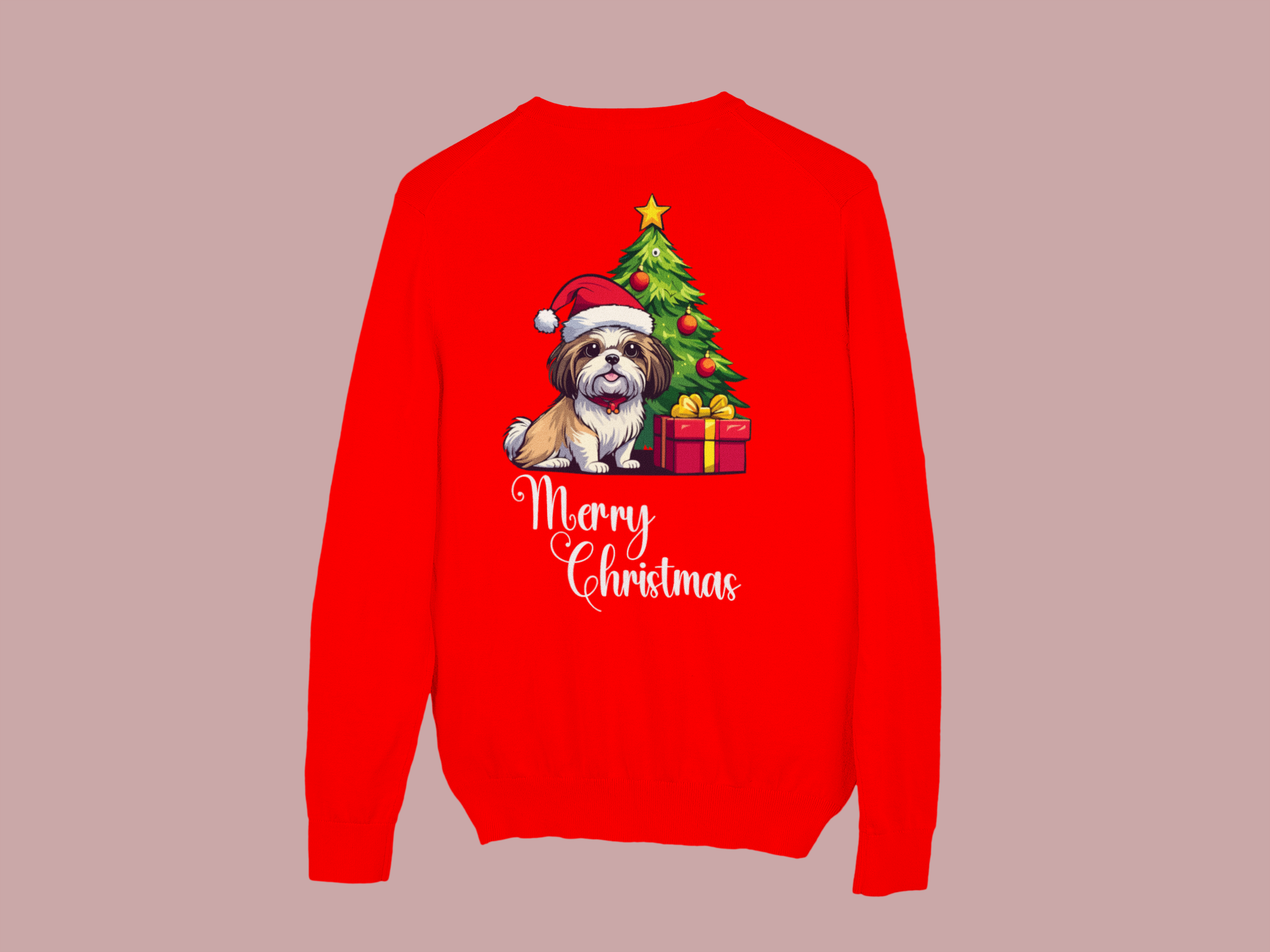 Charming “Merry Christmas” design with a Shih Tzu dressed in a Santa hat